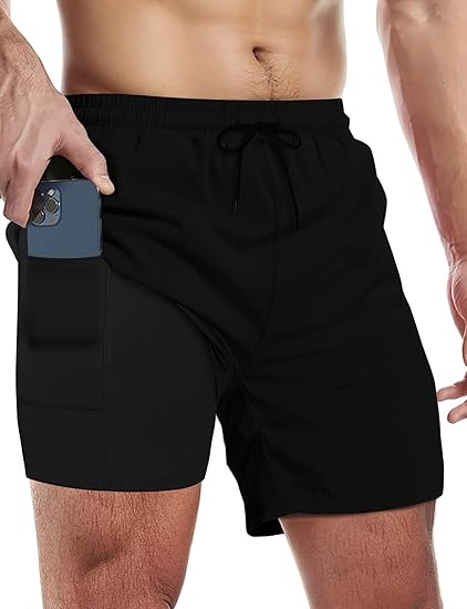 Buauty Mens Swim Trunks with Compression Liner 5 Inch Inseam Quick Dry Swim Shorts Mens Swimsuit Board Shorts with Pockets